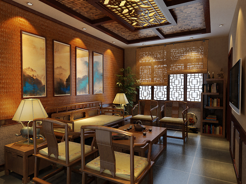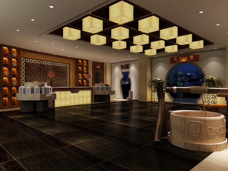 在茶樓中以四合院裝飾題材渲染古韻,運用裝飾設計題材,構建茶樓古典裝修設計的裝飾表情,在渲染古韻的同時也體現了不同的茶樓設計構思。設計運用元素在空間營造中式設計氛圍,而在空間中茶樓裝修配飾的選擇也為室內裝修豐富了設計表現。